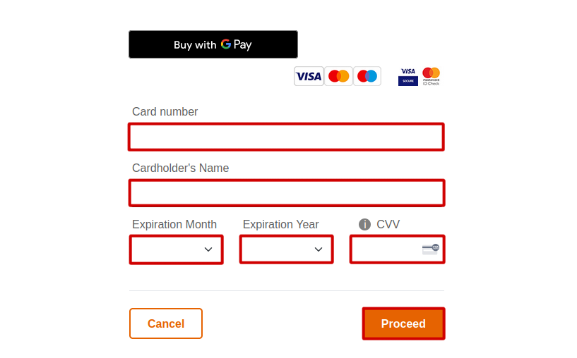 - Τέλος, συμπλήρωσε τα στοιχεία της κάρτας σου και κάνε κλικ στο Proceed για να ολοκληρώσετε την πληρωμή.