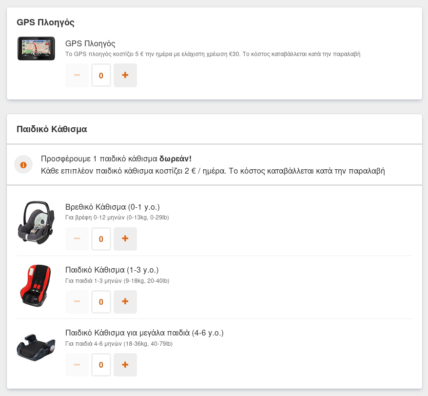- Δηλώστε αν θέλετε Πλοηγό GPS ή Παιδικό Κάθισμα.