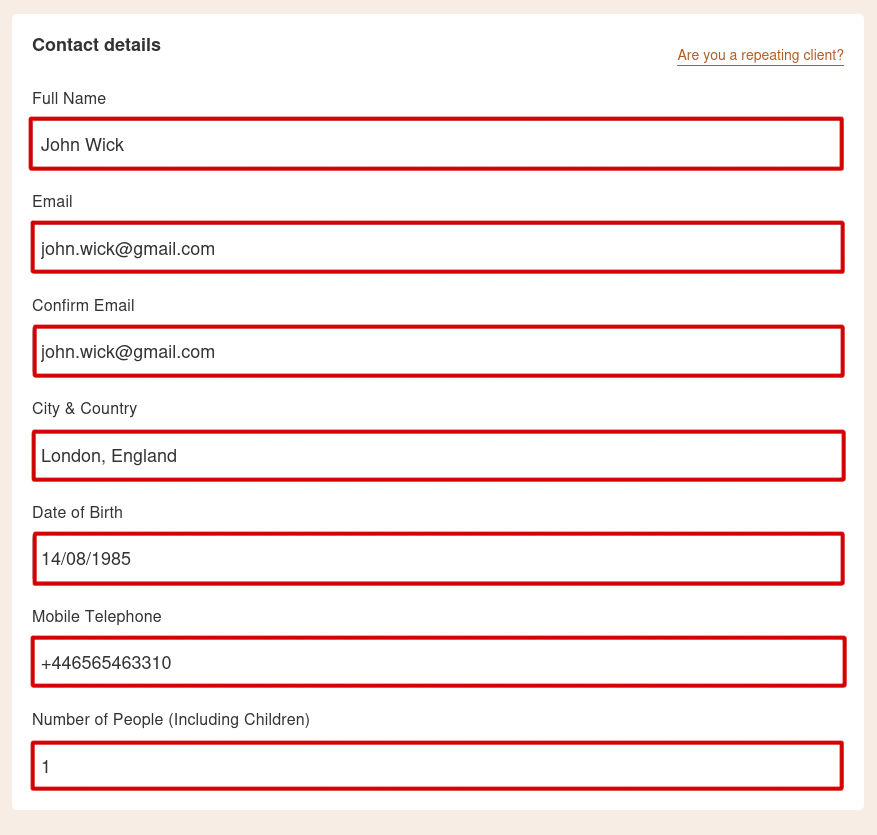 - Ensure that the Total is zero euros and enter the First Name, Last Name, and E-Mail used in your booking. Finally, check the Terms and Conditions, and click the Pay now button.